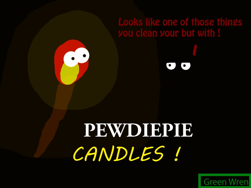 1 My Pewdiepie Candles Fanart Aug 16th 2012, 9:07pm ONE OF MY FAVORITE PEWDIEPIE LINES !!! Candles letsplay: youtube.com/watch?v=xKrg6TIuSK8&feature=g-user-u BASED ON THAT BROFIST !!! Images PEWDIEPIE CANDLES.jpg 109.05 kB, 800×600, viewed 54 times