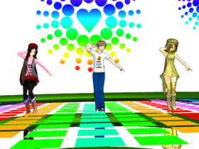 This is a snapshot from MikuMikuDance where I made pewdiepie, marzia, and stephania (female stephano-for no reason) dance to an enthusiastic vocaloid song! I hope you like this!