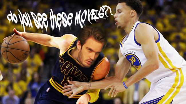 BREAKING: Felix Kjellberg, known widely to most as the world's most subscribed YouTube personality, set down the headphones and picked up the jersey inscribed with the number P to try and carry the Cleveland Cavaliers to a victory in the NBA Finals. Despite all of his efforts with LeBron James, Kjellberg's "sweet moves" were not enough. His record breaking performance does not go unnoticed, as he is now featured on the cover of NBA 2K16 after he burned the previous cover holder with a sexy drive (pictured).