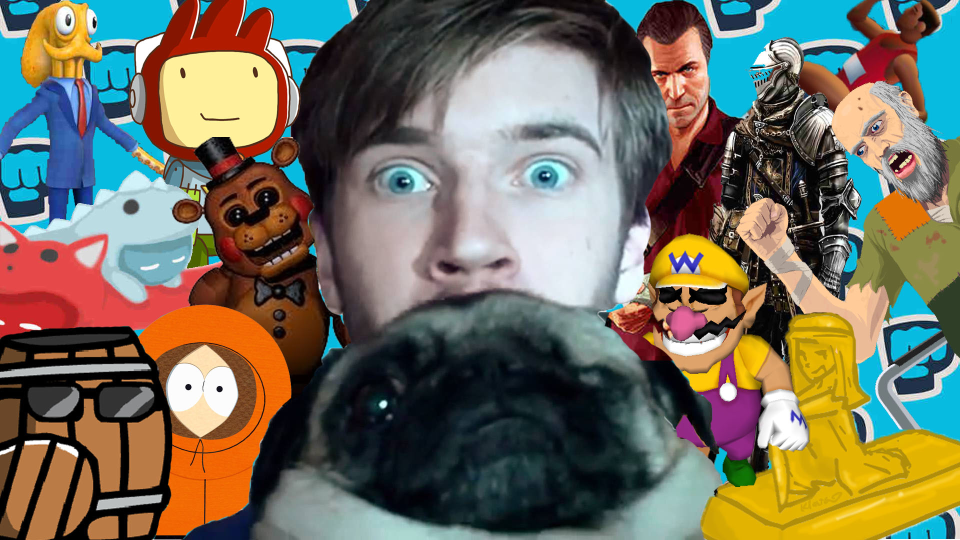 Left to right: Edgar, Puga-chan, Pewds headphone, Mr. Barrel and Pewds logo <3