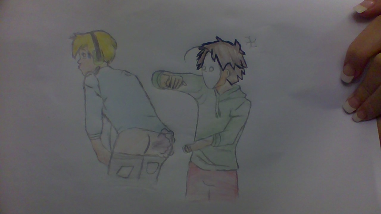 I drew pewdiepie anime style doing a brofist.