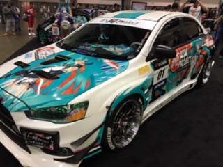 There were wayyy less people than Day 1 of Anime Expo so the line that people wait for the security to check our badges and our bags were really short. After I entered, I finally was able to just look around all the exhibits they put up in the Exhibition Hall instead of waiting in line for the entire day. There were many booths such as AnimeBento, Crunchyroll, Aniplex, Gunpla, and much much more. After looking at these exhibits, I decided to go to the Entertainment Hall where most of the "Anime Games" were being played. In this hall, there were lots and lots of computers and monitors with people playing CSGO, Call of Duty, Super Smash Brawl, Naruto, and other great games. There were even arcade games such as DDR, Pinball, and stuff like those. My favorite things in this hall were definitely the Itasha Alliance and the Miku Racing decal cars. They look so amazing and clean!