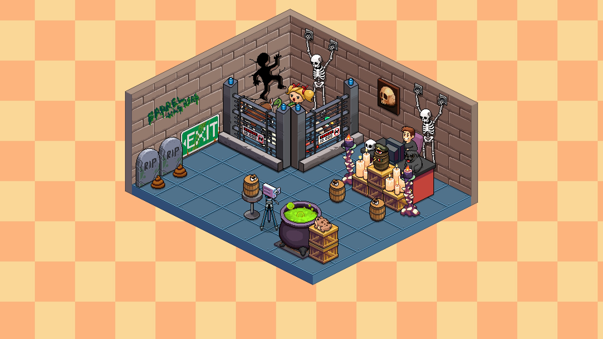 I create i Room just for you Pewds! Let's play a Game! The Barrels and Edgar help me to trap your Friends in my Dark Room. Every Day we will sacrifice one of them. The first Victim is your new best Friend... Slippy! Tick Tock, the Game start now! -