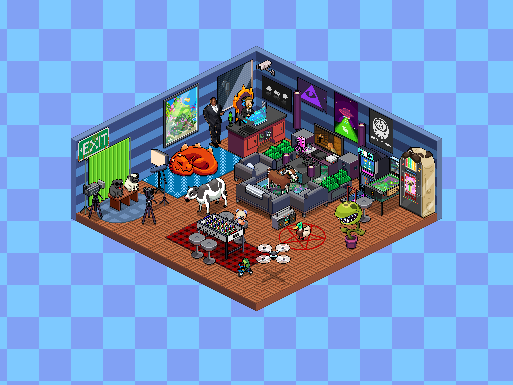 Hope nobody has done this yet but you can get in line and take a picture with Slippy and his poop after pooping on Pewd's, and Edgar, and Maya is taking the picture.