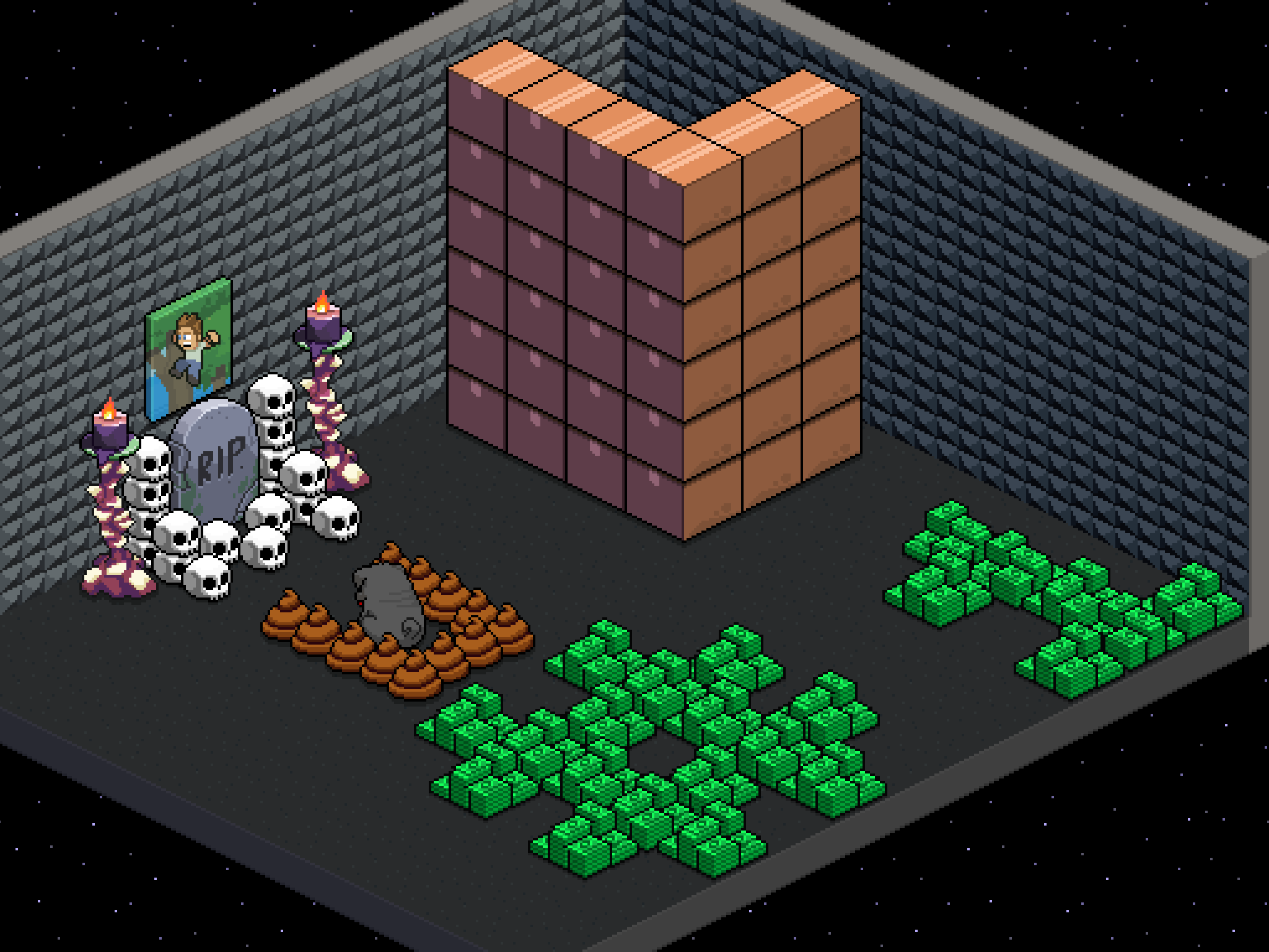 I tried to make a pentagram made out of shit but failed, this is probably a very late entry but it took me a long time. I'm working on a pillow fort now, if you want to see it, my username is SepticPaw.