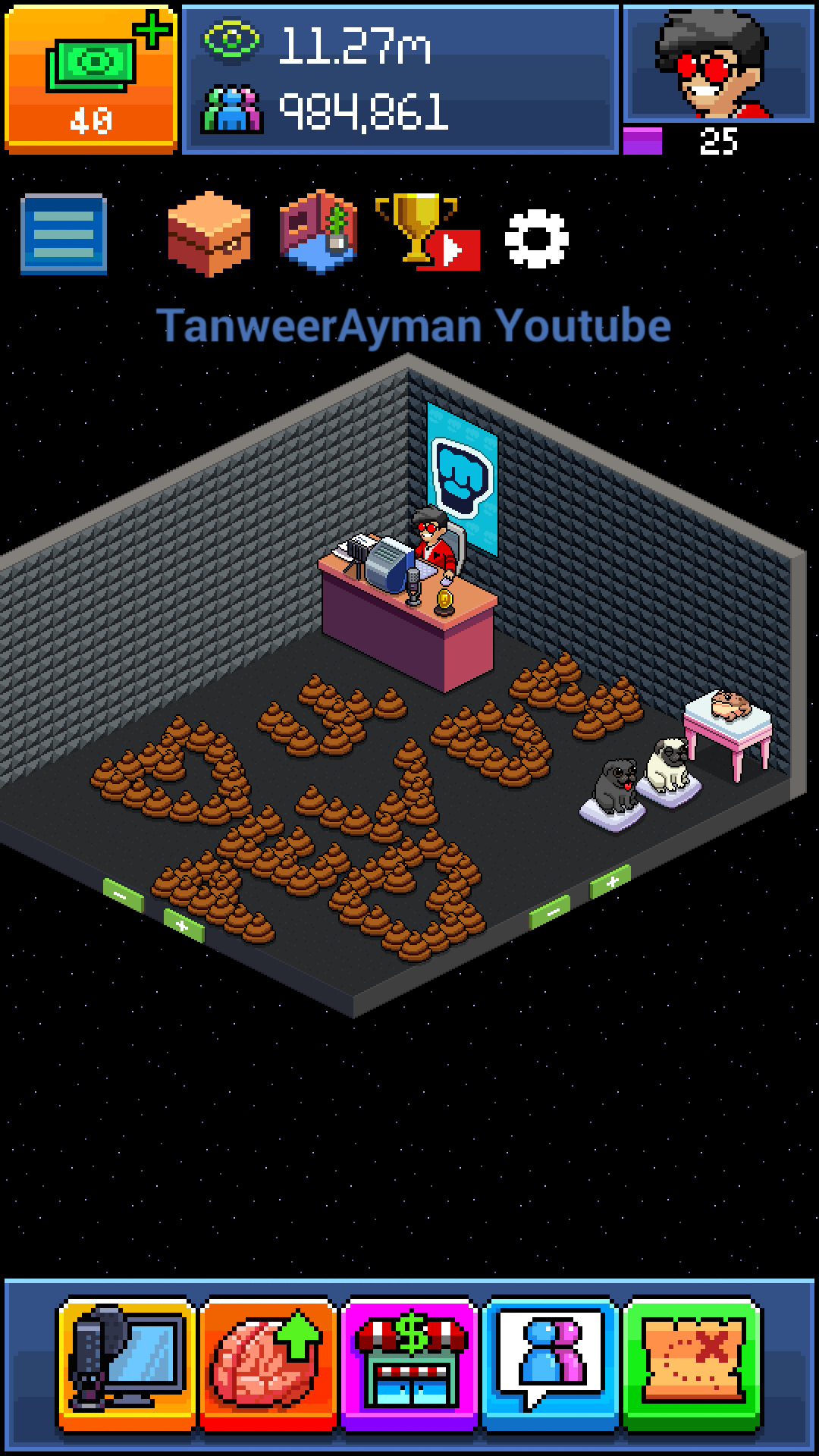But i think i made a cool thing !Been in bro army since 3 years when you started walking dead game series playing Lee character ! Ihave my own youtube channel Tanweer Ayman!!My username in Pewdiepie tuber simulator is "AymanTanweer66".
