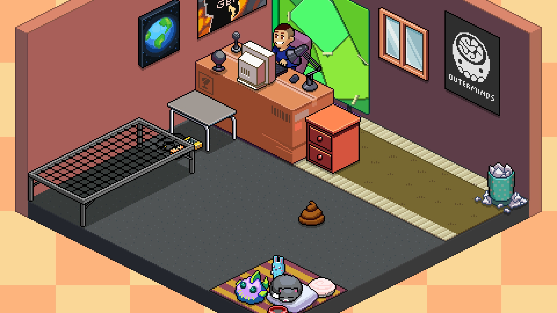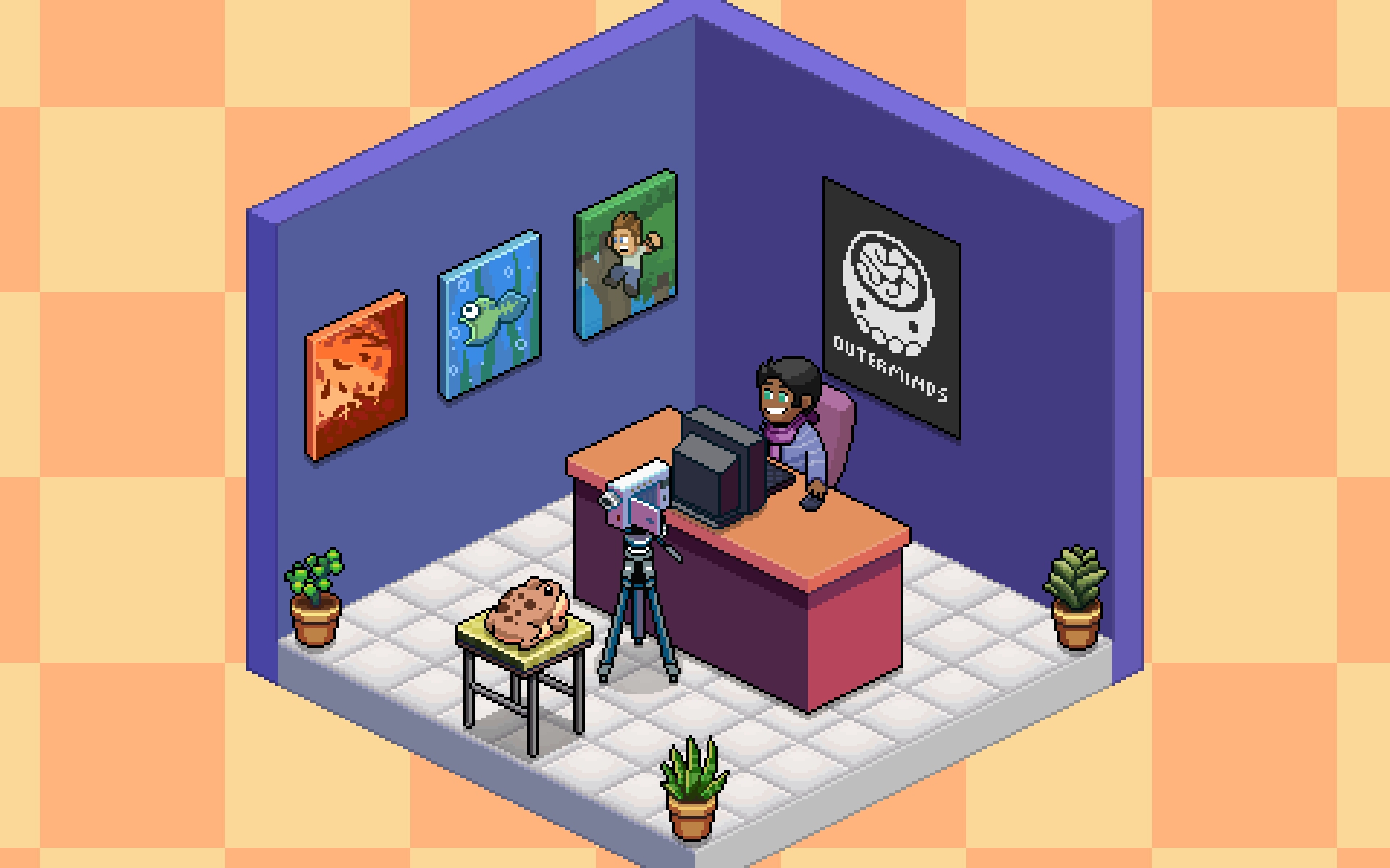 On one side, you see my tuber making his videos with all that fascinates him. (games.. and such)