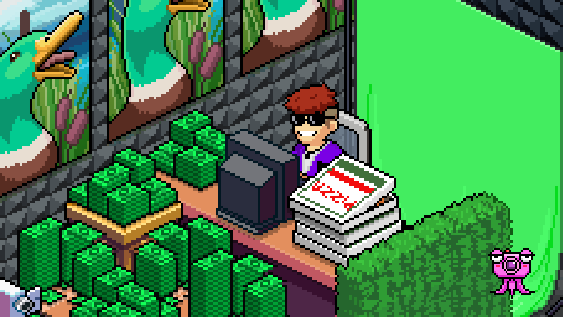 Slippy is admiring his poop that he did on PewDiePie, making a lot of dosh of it too