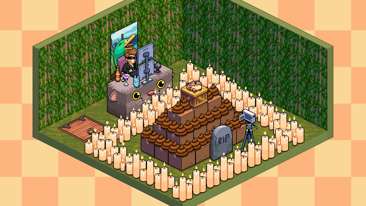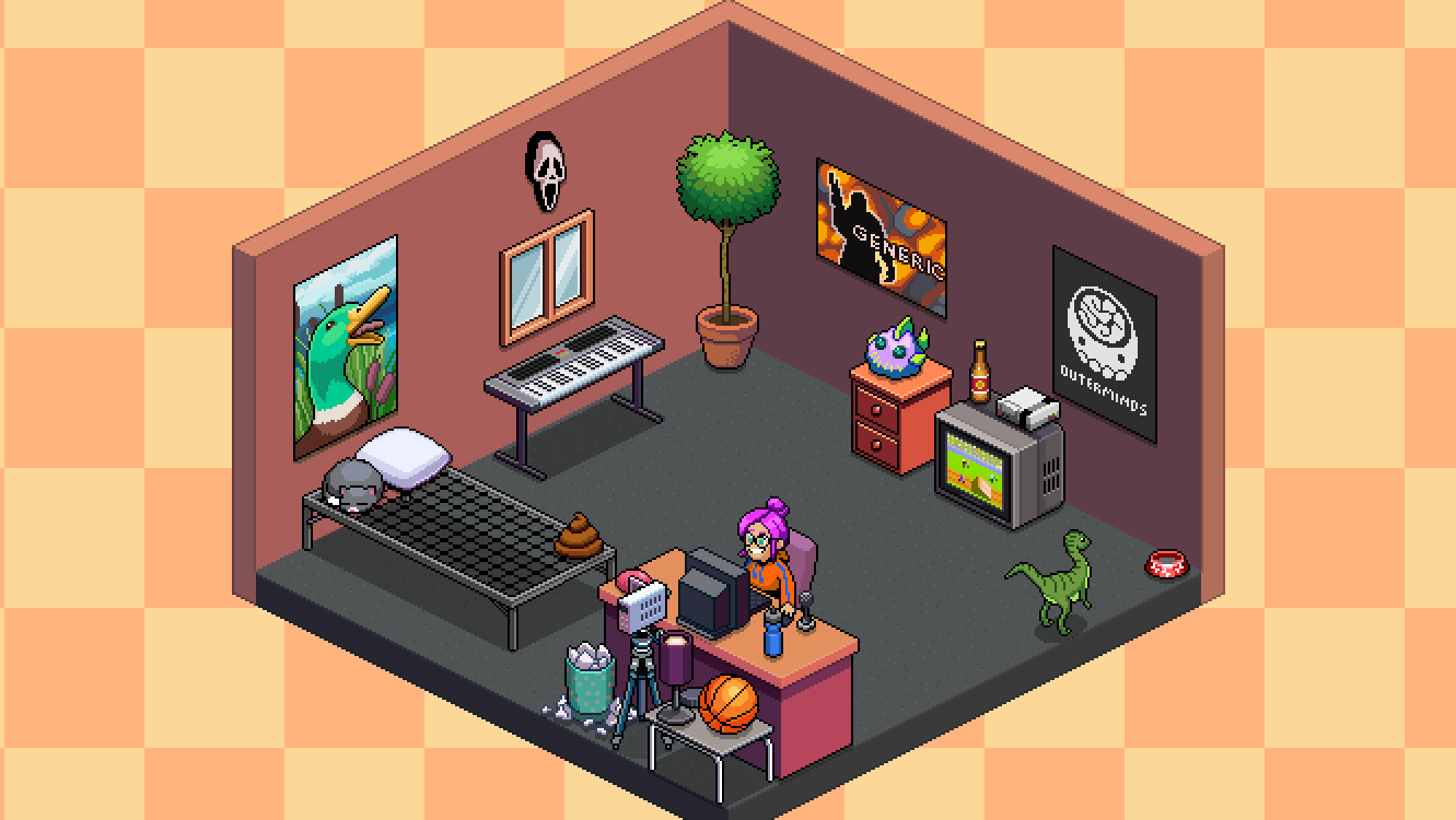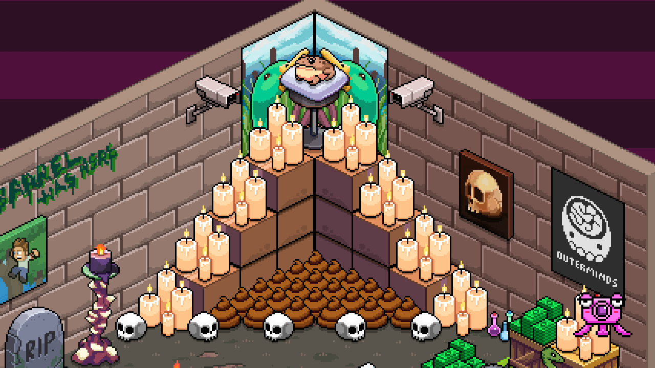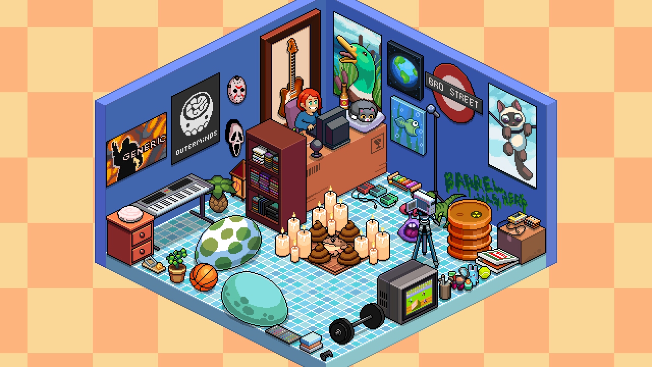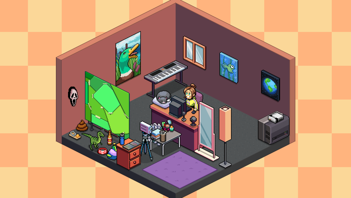 Well, here is my room with a little Slippy poop shrine as the center. He's on top of a trap door because you know what to do with a trap door